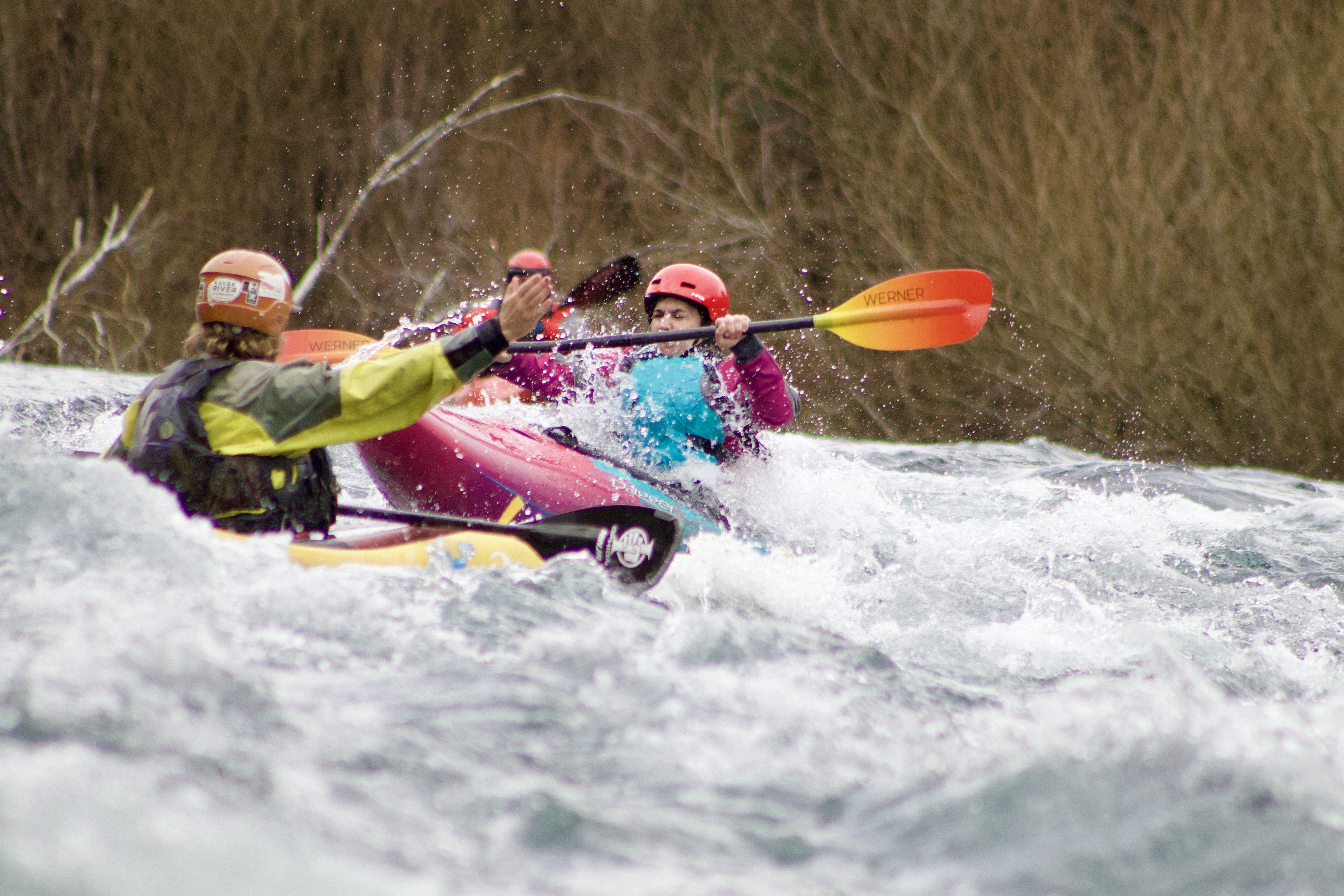 Our beginner trips start in the summer months in Chile of January, February, and March when the weather is warm and the spring water levels have dropped for a more comfortable learning experience. All you’ll need is an enthusiasm for improving and a desire to explore the beautiful pristine glacial rivers surrounding Pucon, Chile. During your week long stay at Patagonia Paddle Institute, you will learn and be able to master the following skills: Sweep Strokes, Rudder Strokes, Draw Strokes, Bracing, Wet Exits,T-Rescues, Sweep Roll, Vertical forward Paddling, Eddy Peel Outs, Ferrys, S-Turns, and basic river safety. By the end of the week you should be able to confidently navigate class 2-3 level rivers!